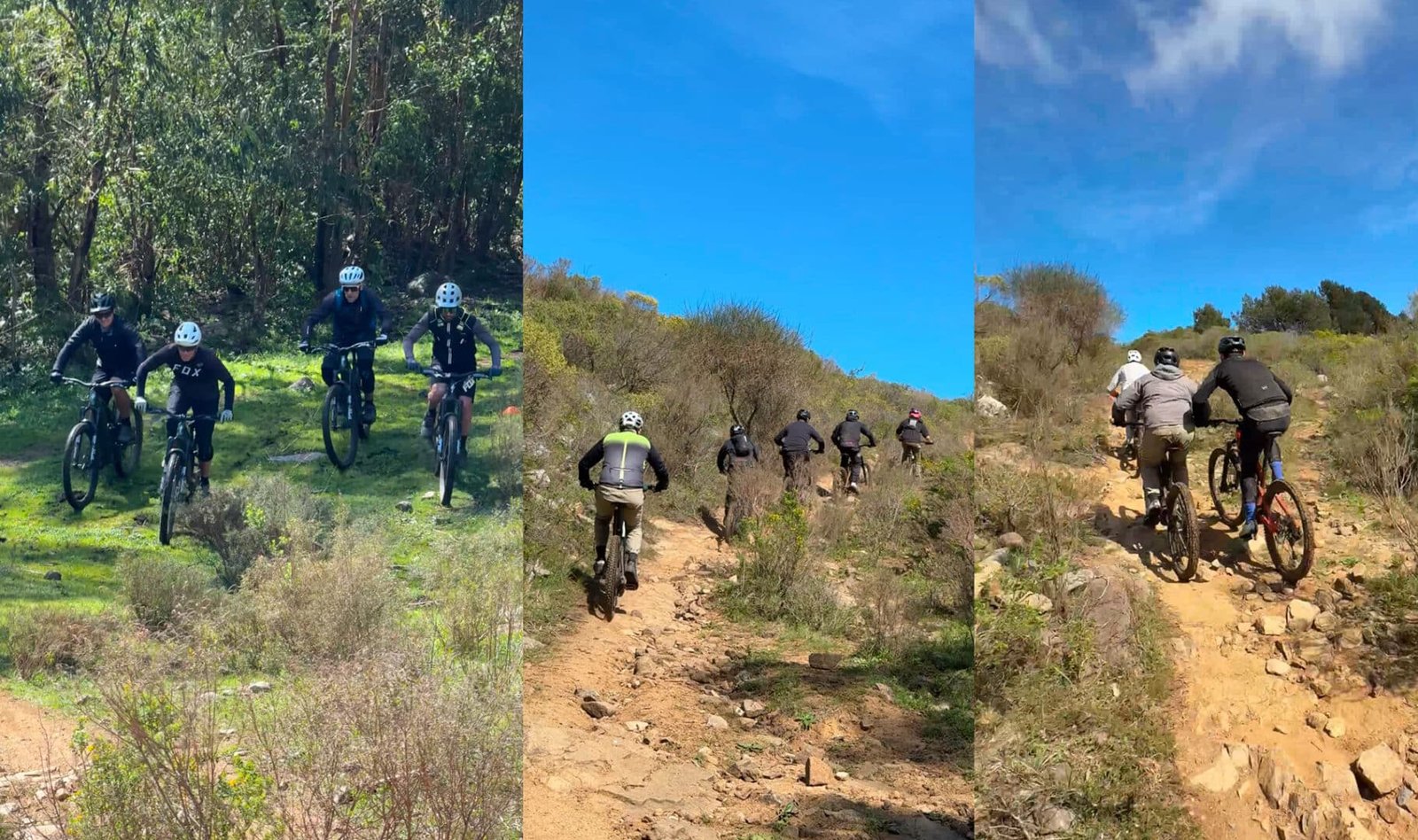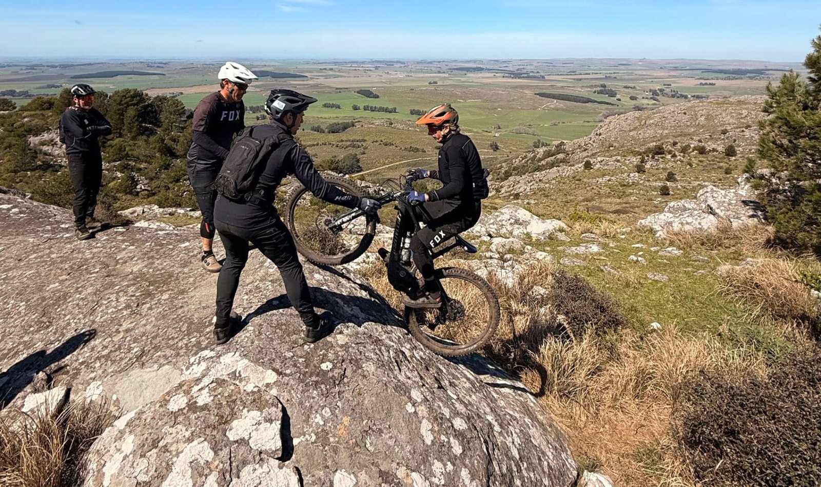 Ya en la parte mas alta del recorrido, el grupo se tomó una foto 360° para luego ir directo al próximo desafío. Una gran roca maciza que debía descenderse a pura técnica. Dropper totalmente bajo, cuerpo ligeramente hacia atrás, dosificando los frenos para no derrapar y manteniendo el grip en las cubiertas para no deslizar de más.