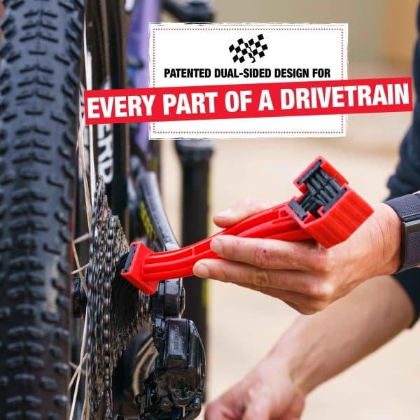 Diseñado para limpiar cada componente de la transmisión de una bicicleta, el cepillo Finish Line® Grunge Brush™ cuenta con dos tipos de cerdas únicas. Las cerdas en forma de herradura de un extremo son ideales para limpiar cadenas, roldanas y platos. Las cerdas largas y rectas del otro extremo están diseñadas para limpiar cassettes y desviadores.
