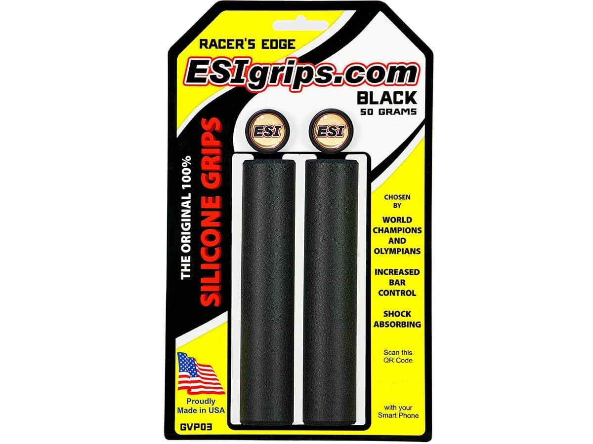 Los puños ESI Racer’s Edge son puños construidos 100% con silicona y centrados en ciclistas exigentes que buscan un agarre firme y puños de mediano a delgado espesor.