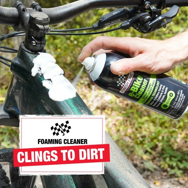 Formulado para eliminar de forma segura la suciedad sin usar agua, el limpiador para bicicletas eléctricas Finish Line® se puede usar para limpiar cada parte de tu bicicleta eléctrica. Úsalo en cuadros, ruedas, carcasas del motor y la batería, contactos y pines de la batería. Este limpiador de espuma adherente de alta tecnología es suave y no corrosivo. Se limpia fácilmente y no deja marcas. Simplemente rocía y limpia con un paño limpio para obtener un acabado impecable en todas las superficies.