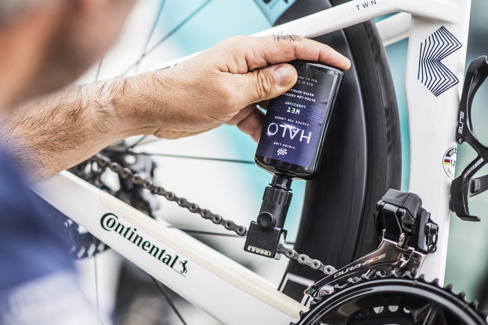 El lubricante para cadenas HALO® WET está diseñado para ofrecer un rendimiento inigualable en la transmisión, tanto en condiciones secas como húmedas. Tres ingredientes de primera calidad brindan resultados superiores.