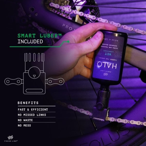 * Este lubricante se aplica con el nuevo sistema Smart Luber™ de Finish Line, representa un cambio radical en la forma de aplicar lubricantes a la cadena de la bicicleta. Garantiza que no se omita ningún eslabón, que no se produzcan derrames, que no se desperdicie lubricante y que no se pierda tiempo al lubricar la cadena para obtener el máximo rendimiento.