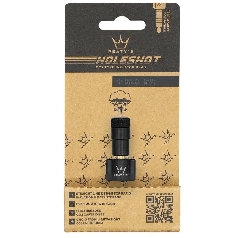 El pico inflador de neumáticos de CO2 Holeshot de Peaty es la herramienta perfecta para inflar rápidamente tus neumáticos sin cámara en situaciones de emergencia. Diseñado para ofrecer un inflado eficiente y controlado, este cabezal es compatible con cartuchos de CO2, lo que te permite obtener la presión adecuada de forma rápida y sin complicaciones. Compacto y fácil de usar, es ideal para llevar en tus salidas y carreras, asegurando que nunca te quedes sin aire cuando más lo necesitas.
