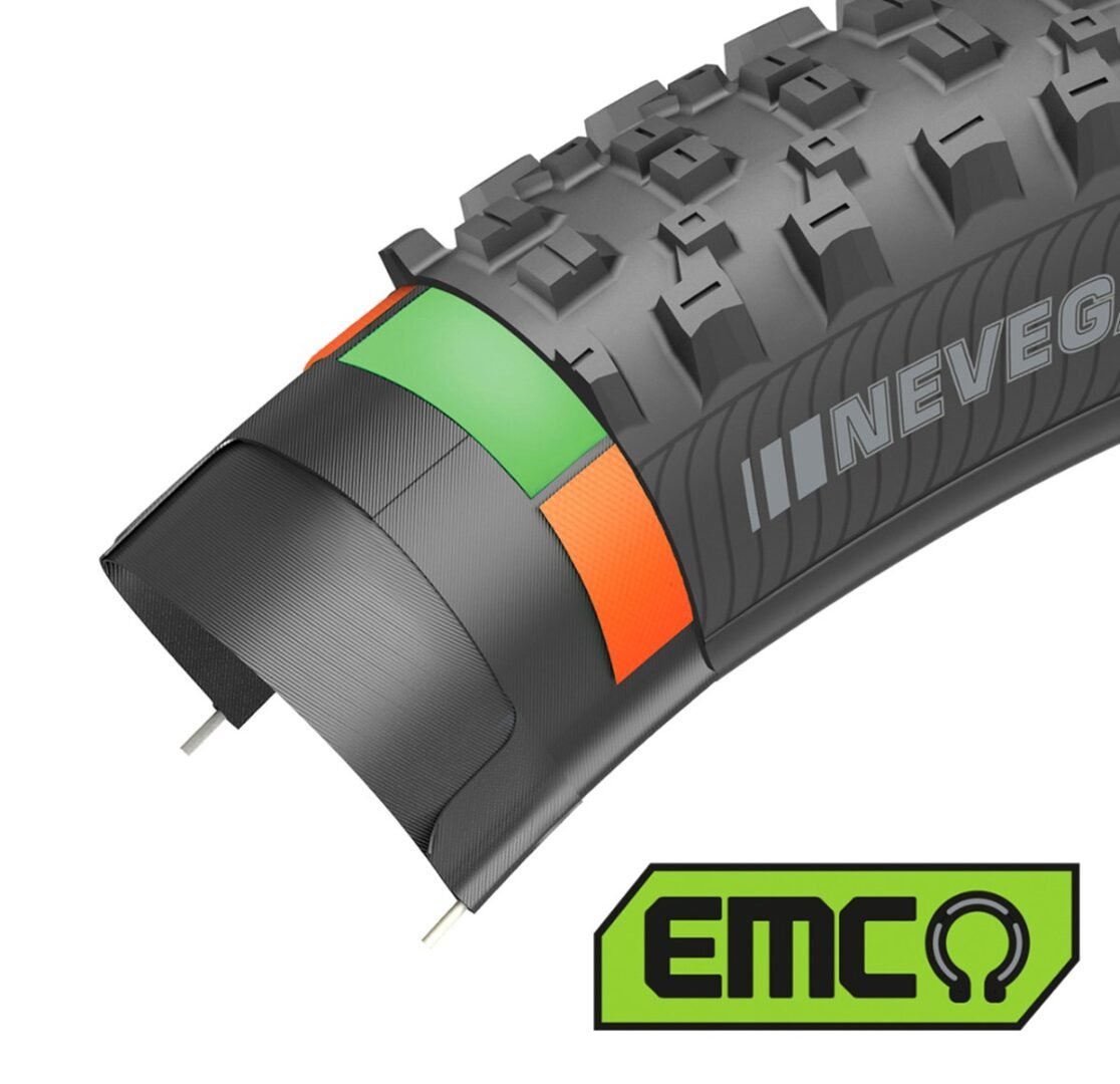 EMC es la primera carcasa de neumático del mercado diseñada específicamente para bicicletas de montaña eléctricas. Gracias a una capa reforzada de tejido y una capa adicional de protección antipinchazos, cada neumático con carcasa EMC es más duradero y ofrece mayor control y agarre que cualquier otro neumático estándar para MTB. Cuenta con la certificación ECE-R75 y está homologado para su uso en bicicletas eléctricas de hasta 50 km/h.