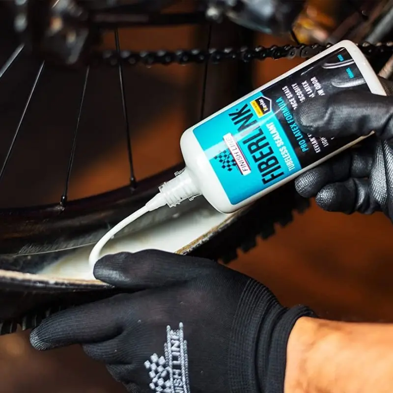 El sellador para neumáticos sin cámara Finish Line FiberLink™ está fabricado con Kevlar® para proporcionar un sellado más rápido y resistente.
