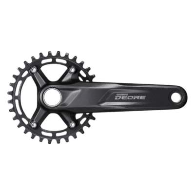 Cuenta con un monoplato desmontable BCD 104 fabricado en aluminio 7075 y con sistema narrow wide para evitar el desplazamiento de la cadena, compatible hasta 12 velocidades.