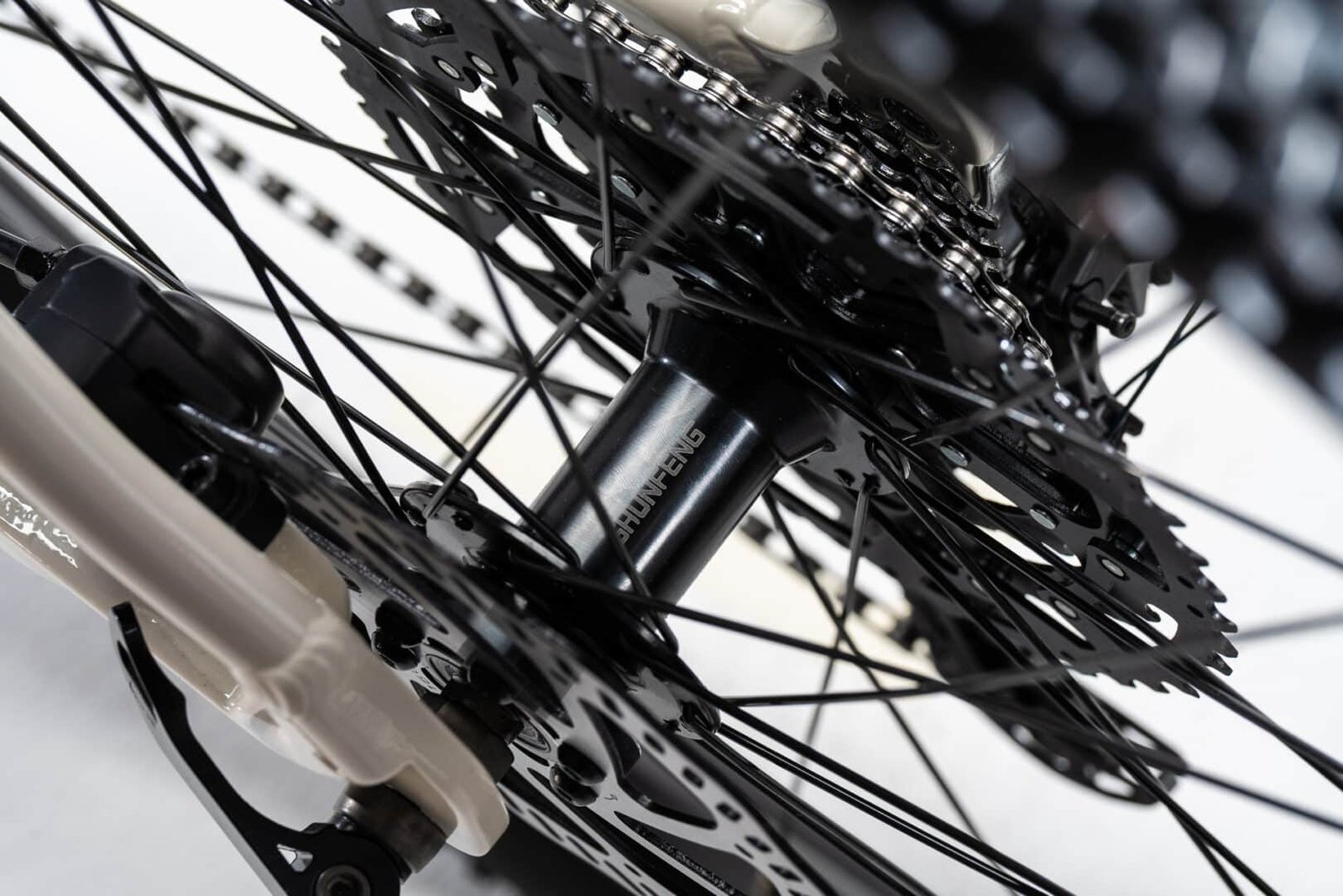 – Maza trasera: Shunfeng 9x135mm a rulemanes 32H.