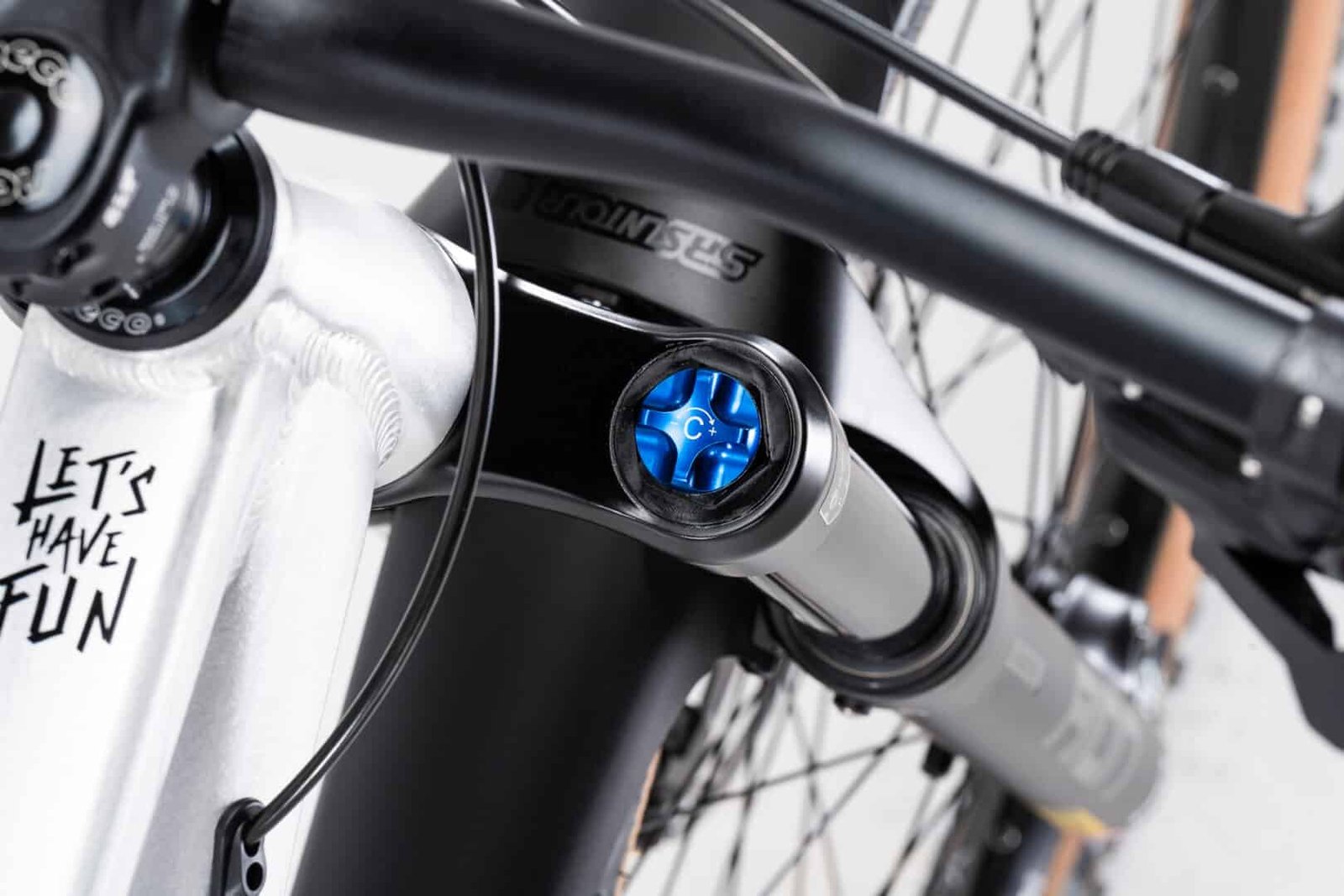 Su cuadro está fabricado con tuberías de aluminio 6061 triple butted y cuenta con un sistema de eje trasero Boost 12×148, acompañado de un fusible UDH. Además, presenta una dirección cónica con un ángulo de 64°, diseñado para afrontar cualquier sendero con confianza.