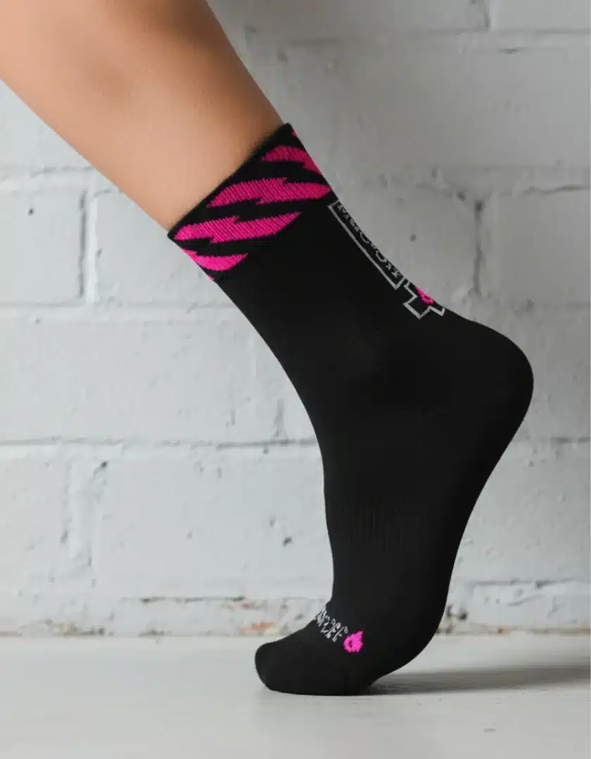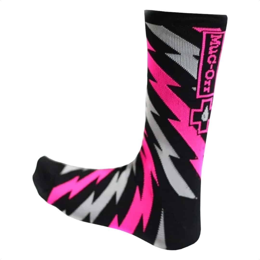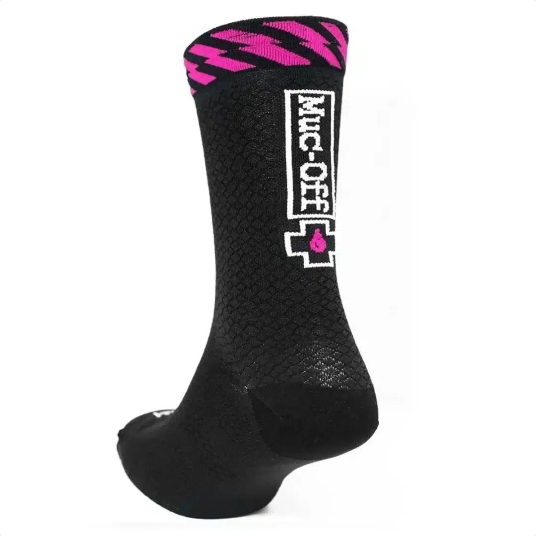 Los calcetines de caña alta Muc-Off están diseñados para brindar rendimiento y comodidad, con una costura plana en la puntera y una parte superior de malla transpirable, todo compuesto de una tela de secado rápido que absorbe la humedad.