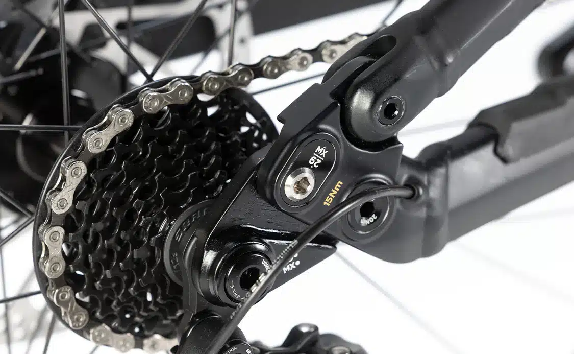 – CUADRO: ALX Alloy, 200 mm de recorrido, Mullet (29″ delante / 27,5″ detrás), OLD de 157 mm, pedalier roscado BSA de 83 mm, suspensión flotante, geometría ajustable, bieleta superior de carbono.