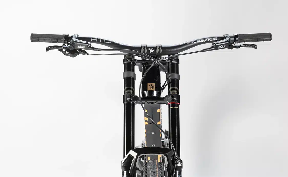 – MANUBRIO: Raceface Atlas 35, 820 mm de ancho, elevación: 35 mm, retroceso de 8°, diámetro del manillar: 35 mm.