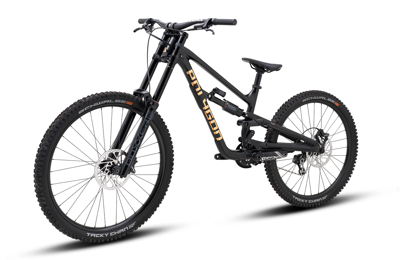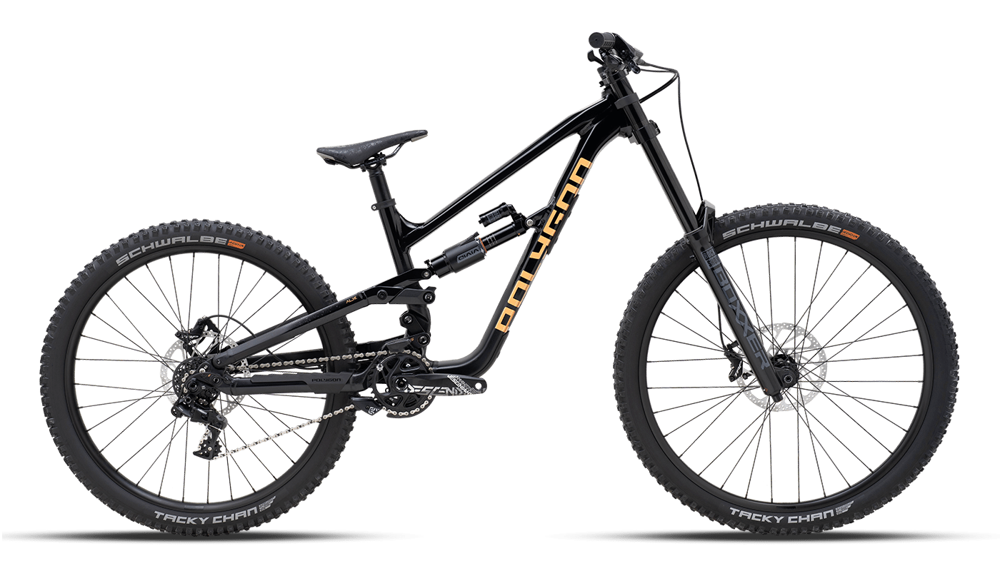– LLANTAS: Llantas de aleación Polygon MT6, 27,5″ trasera, 29″ delantera, 29 mm de ancho interno, 32 radios, compatible con neumáticos sin cámara.