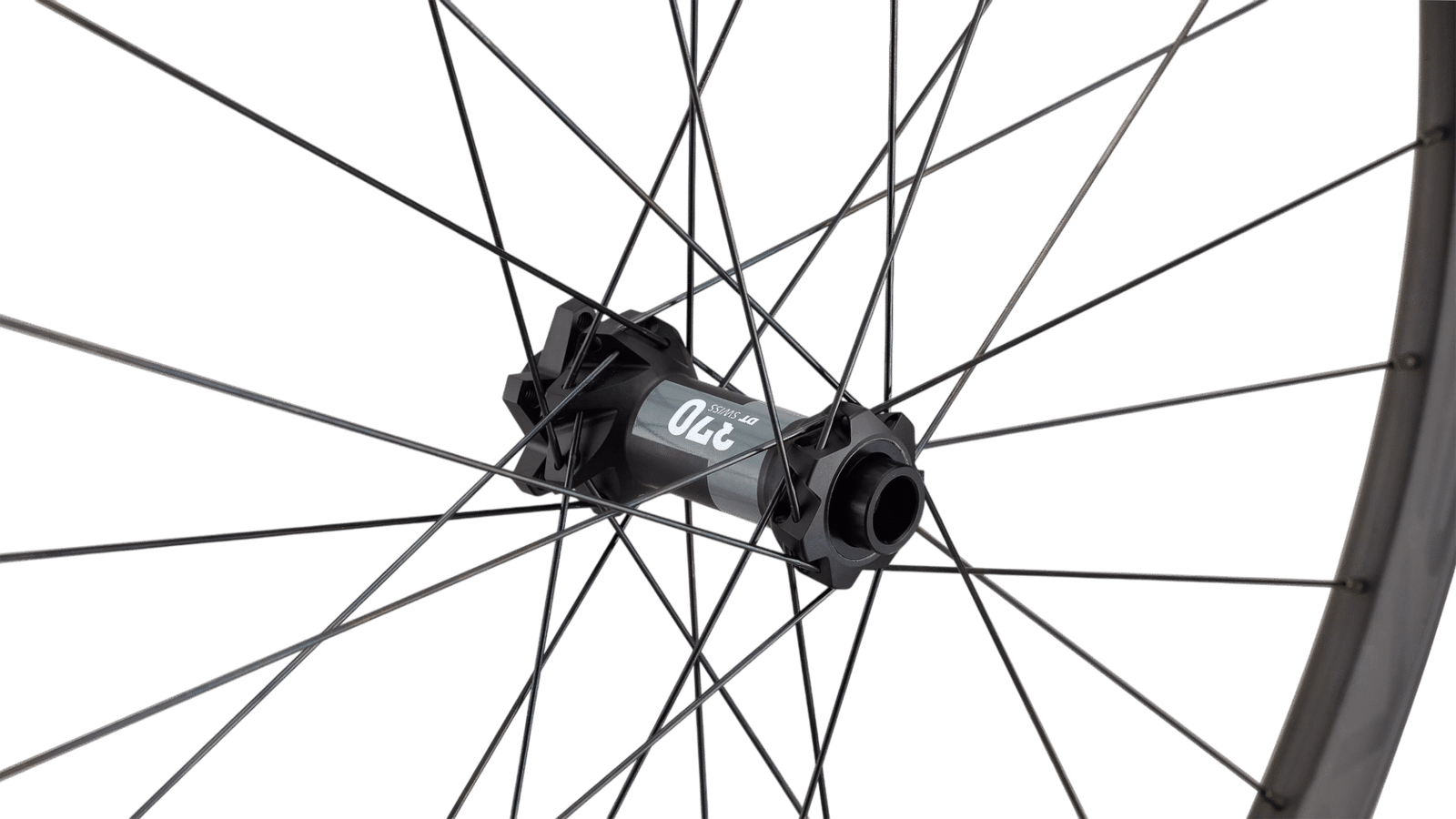 * MAZA DELANTERA: DT Swiss 370 Straight Pull, 6 tornillos, 15 x 110 mm, tapas de extremo de 19 mm de diámetro exterior instaladas
