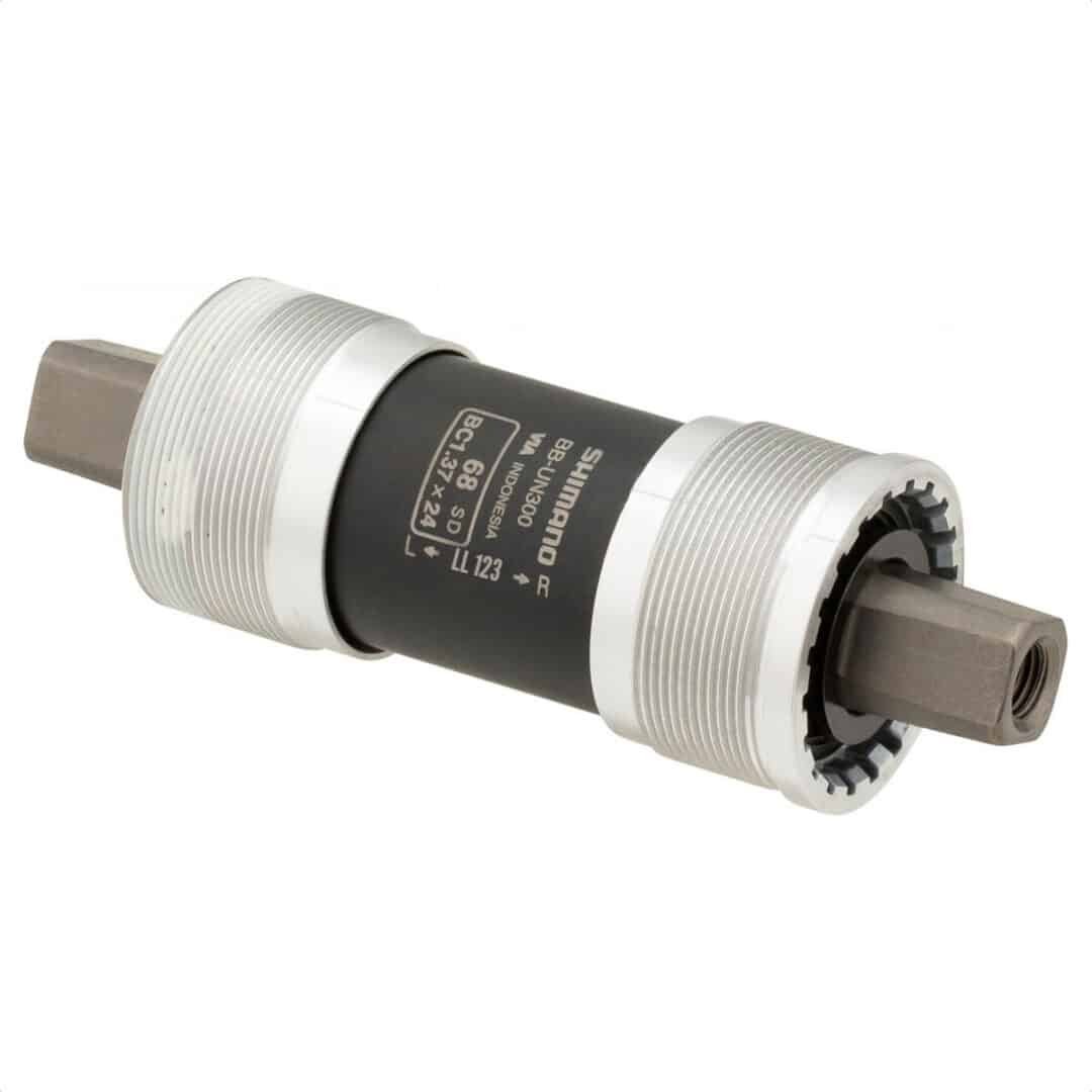 El rodamiento interior cuadrado BB-UN300 fue intruducido en el mercado por Shimano como sucesor de los modelos BB-UN26 y BB-UN55. Cubre una amplia gama de aplicaciones, desde el trekking y las bicicletas urbanas hasta las antiguas bicicletas de ruta y de montaña. El BB-UN300 está disponible con rosca BSA y se encuetra disponible en diferentes longitudes de eje. En este tipo de rodamiento interior, el eje de pedalier y la biela están conectados por un cono cuadrado. El volumen de envío no incluye tornillo de biela.