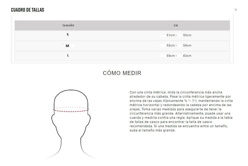 – SMALL: DE 51CM A 55CM.