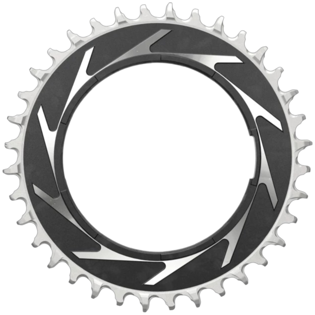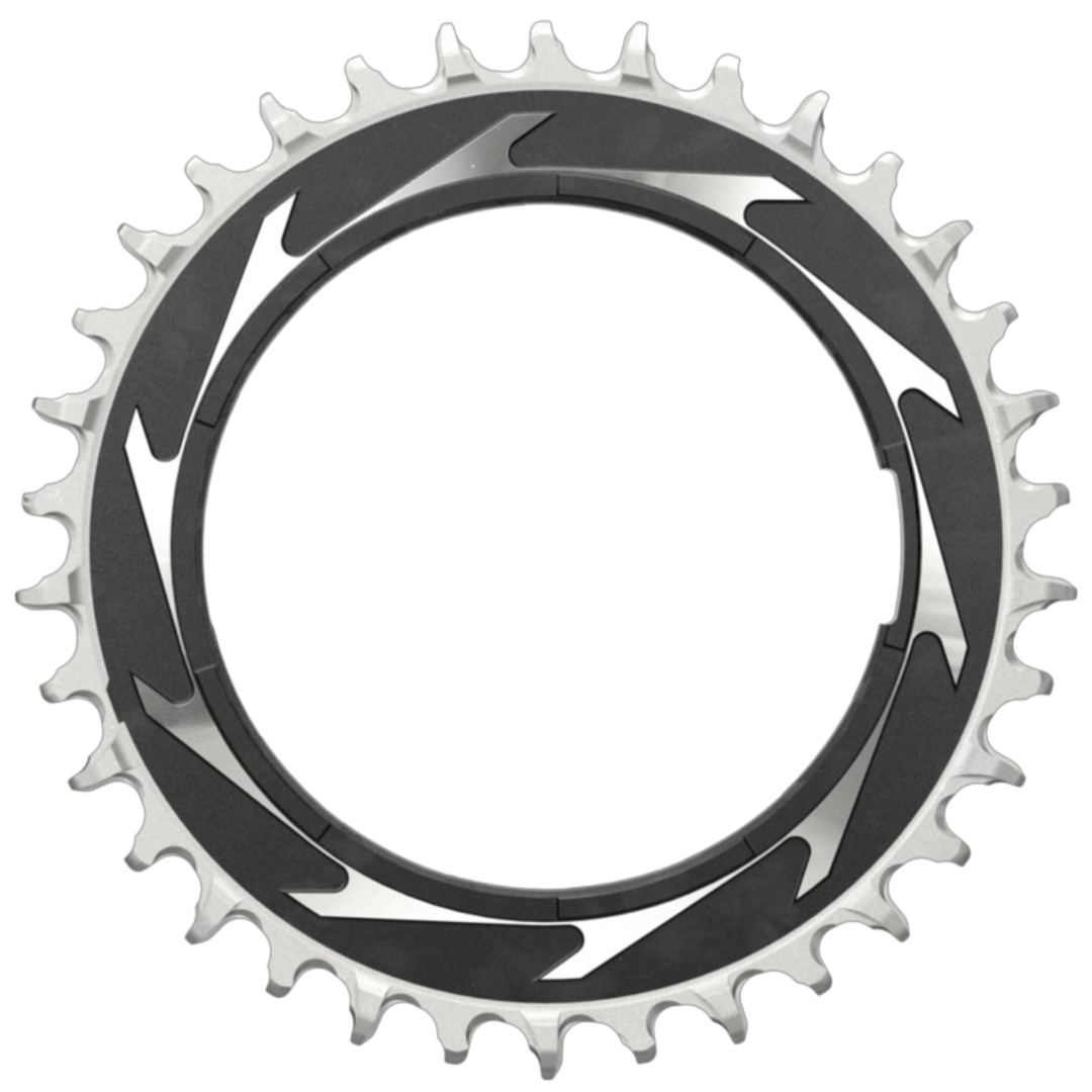 Este plato T-Type de SRAM de la serie XX SL Eagle de peso optimizado para los entusiastas del Cross Country tiene Offset de 0 mm y se fija a las bielas con la correspondiente araña Powermeter mediante Thread Mount. Esta optimizado para la interaccion con cadenas de T-Type