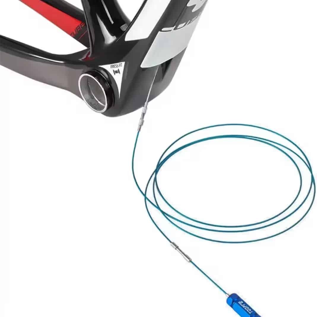 Kit completo de cableado interno con cabezal de almacenamiento, guía magnética y cable de 1,6 m. Ideal para cuadros de carbono, titanio y aluminio con orificio minimo 6mm. No apto para cuadros de acero.